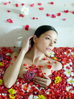 - Bồn tắm của bạn phải hoàn toàn nước ấm và bổ sung một ít hoa oải hương, hoa oải hương có tác dụng làm thư giãn cơ thể và làm giãn cơ bắp. Bạn có thể them hoa cúc, hoa cúc có tác dụng làm dịu da và giảm việc sưng và đau ở da. Nằm trong bồn tắm các vị thuốc đó thấm và da làm thư giãn cơ thể và tâm trí của bạn.
